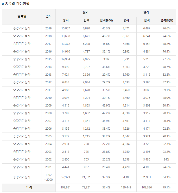 승강기기능사 합격률을 한번 살펴 보겠습니다.