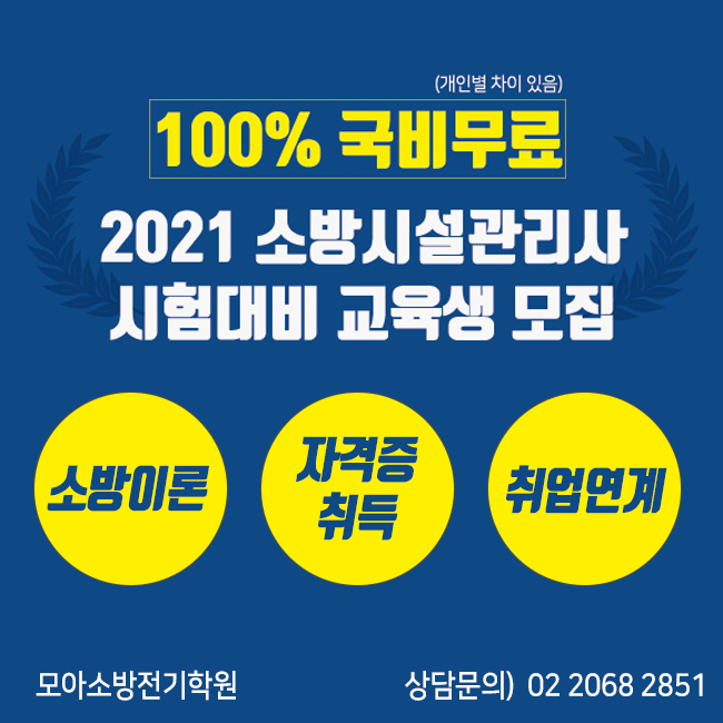 | 실업자 국비지원 "소방시설관리사1차 +2차 종합반" 교육생 모집 (0) | 2020.08.21 |