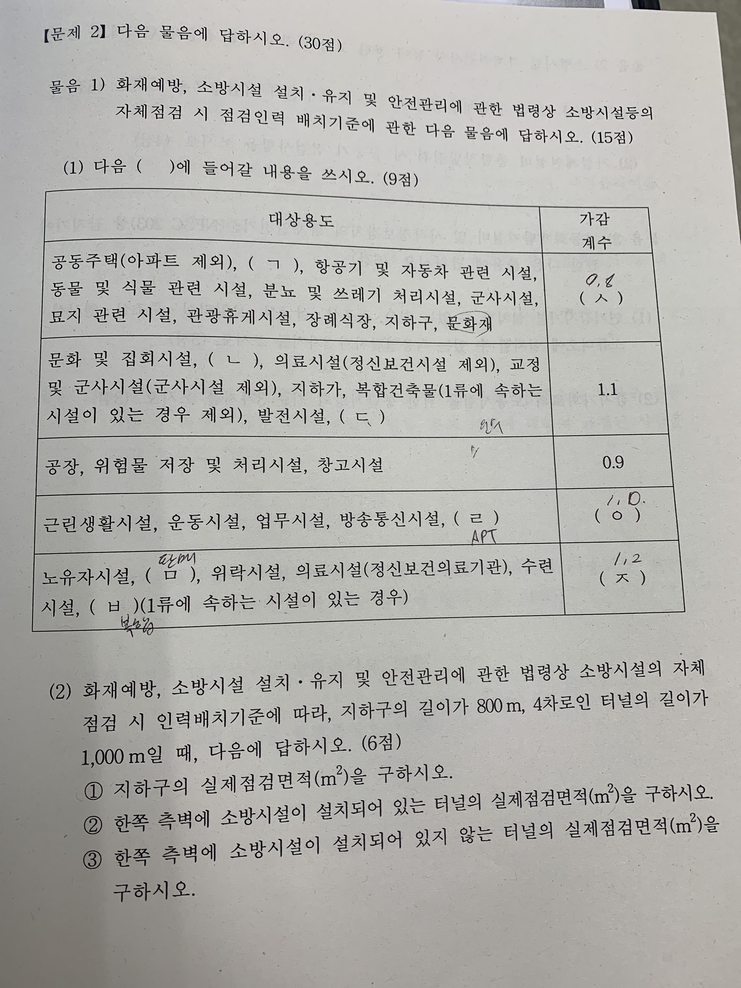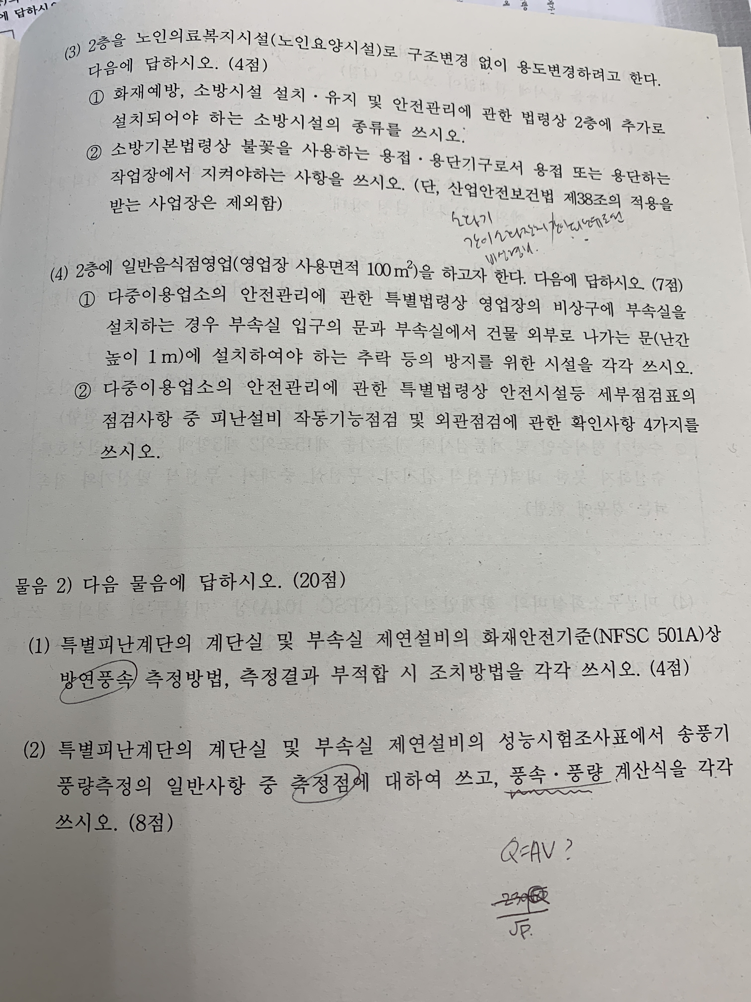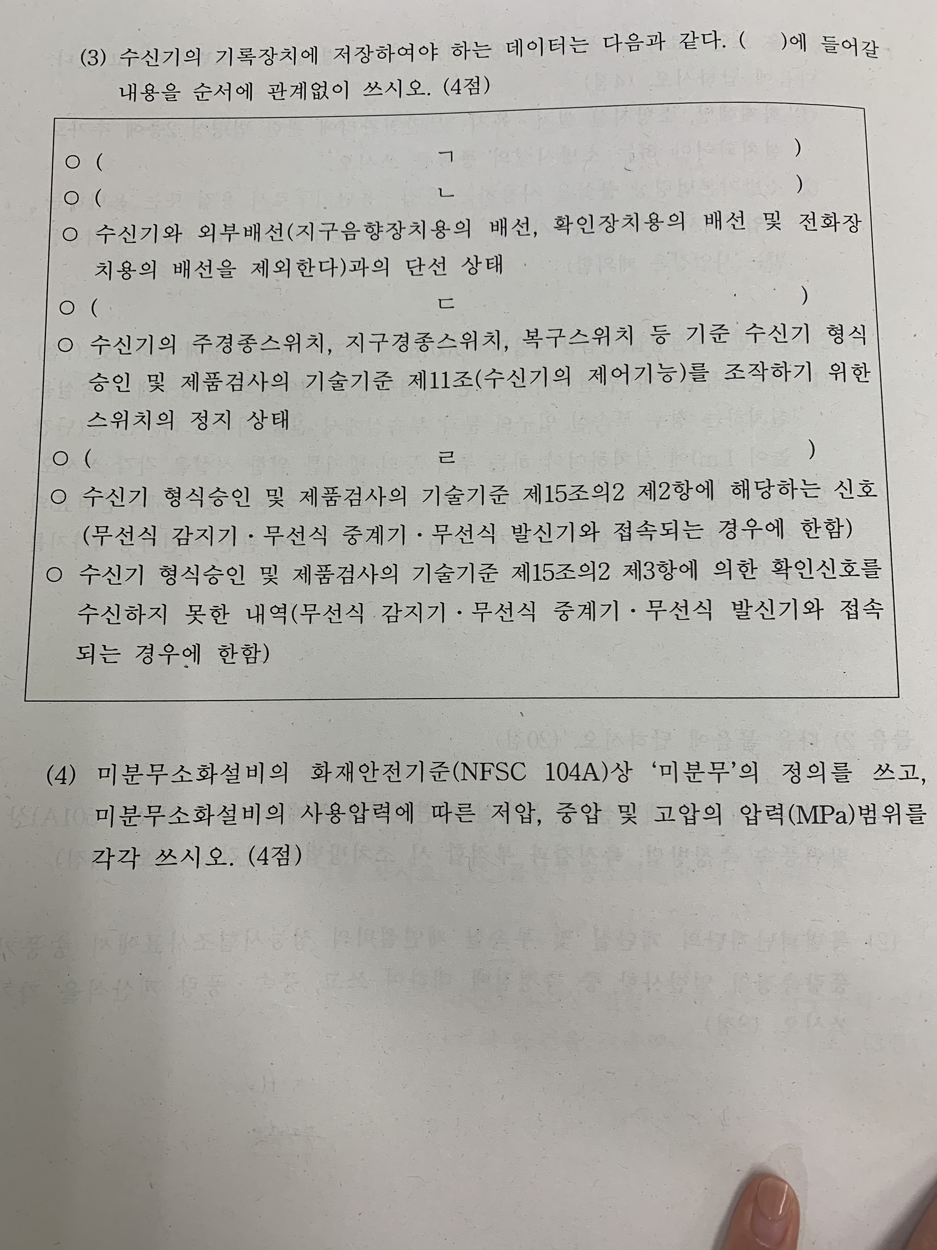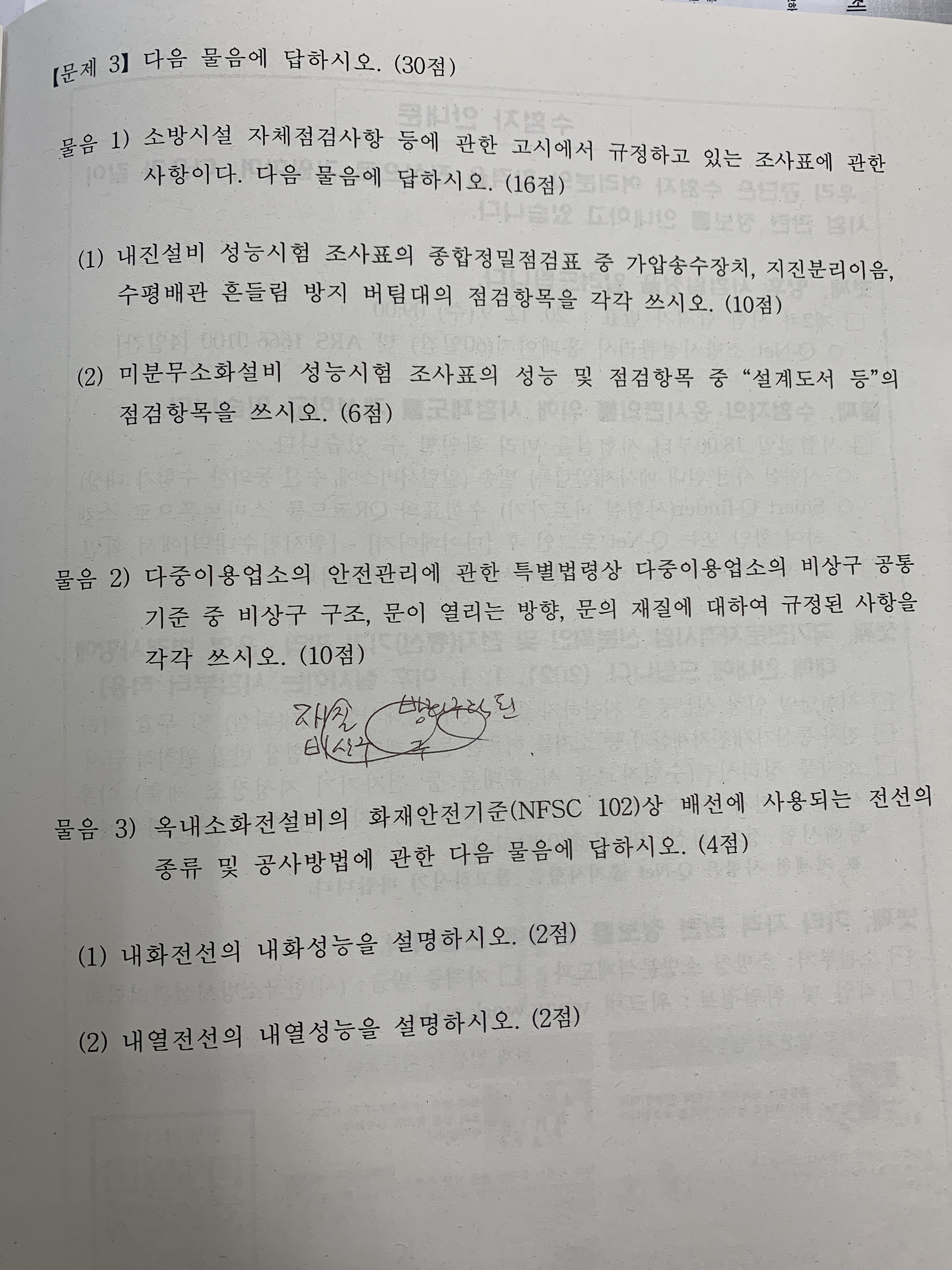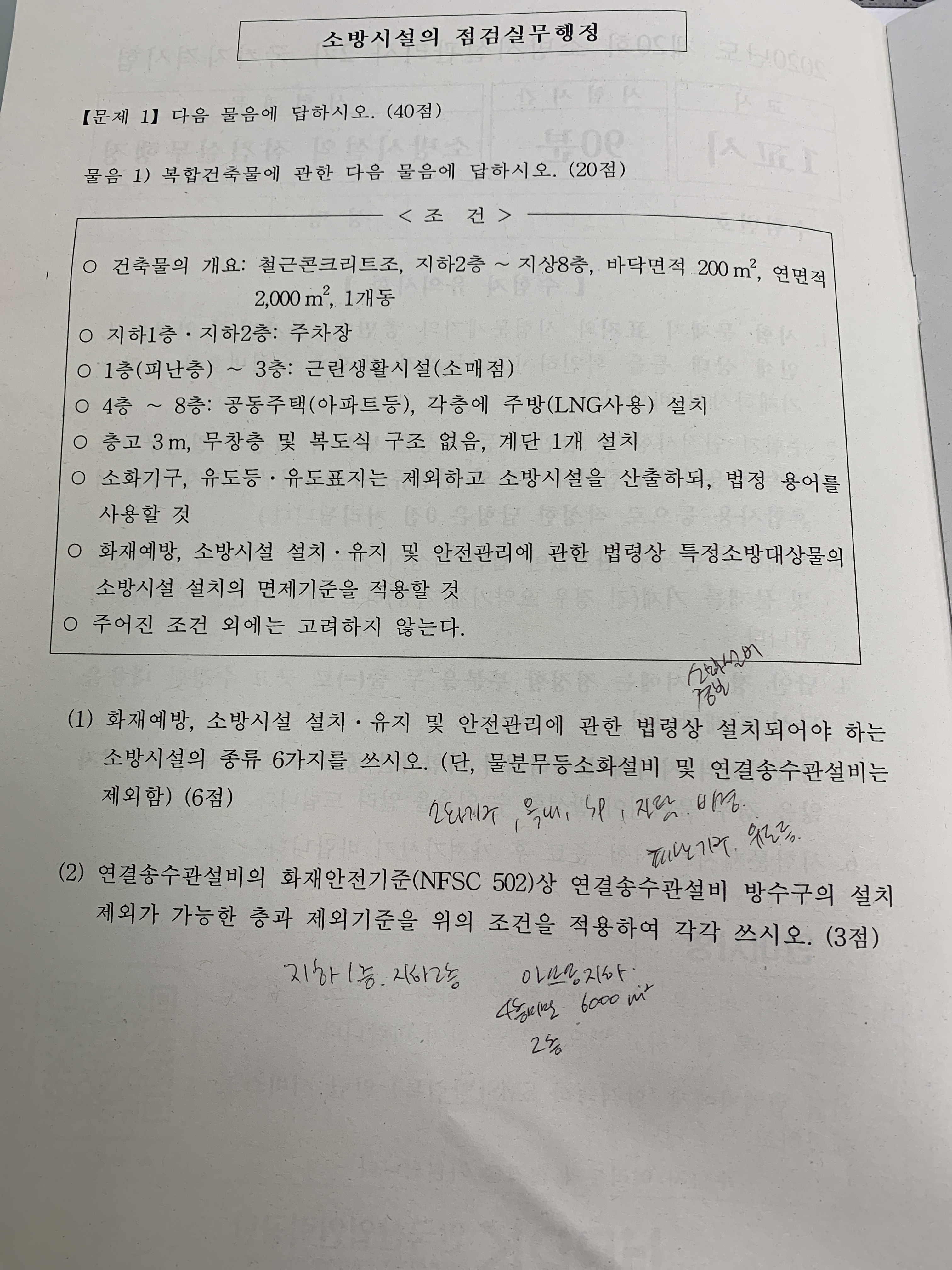 20회 소방시설관리사 2차 1교시 점검실무 문제 드립니다.