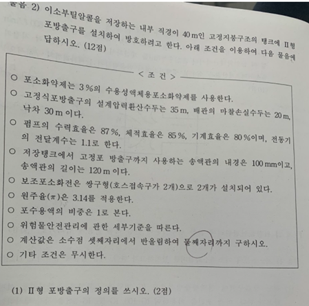 문제 3)도 단순히 스프링클러설비만 보고 풀어내시면 안됩니다. 위험물안전기준에 따라서 문제를 해석하고 풀어내셔야 합니다.