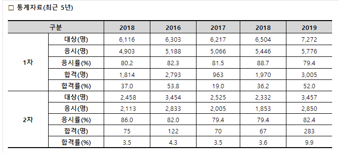 역대 합격률을 보시면더 와 닿을 것 입니다.
